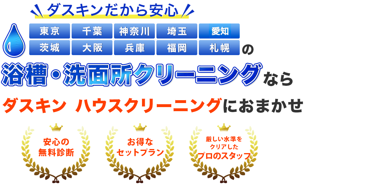 洗面ボウルの黒ずみや鏡のくすみなど、普段のおそうじではなかなか落とし切れないガンコな汚れを専用の洗剤やスポンジですっきりキレイに取り除きます。